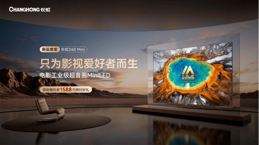 长虹D6SMini电影工业级超音画MiniLED电视,只为电影爱好者而生,现正在京东、天猫、抖音等平台长虹官方旗舰店火热预售中,3月18日正式开售。