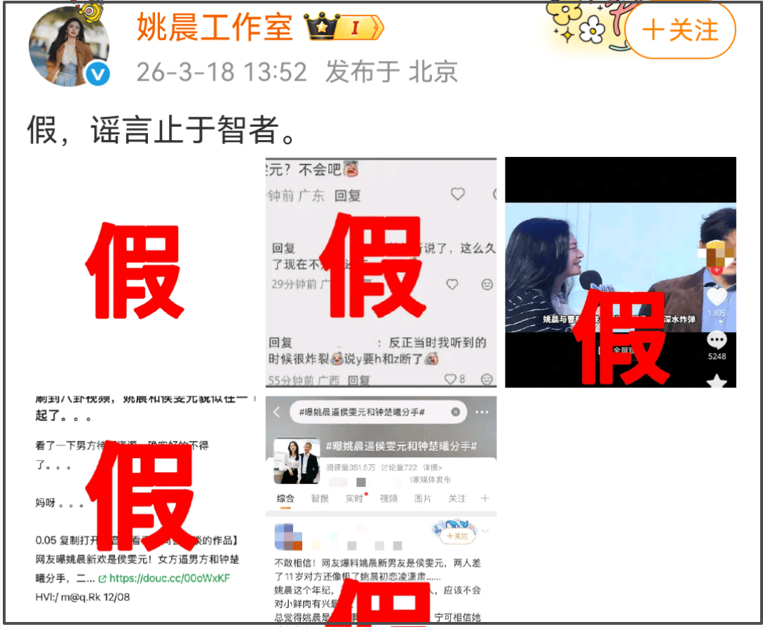 网络上真真假假的爆料太多,姚晨和侯雯元绯闻能够全网发酵,也有多重原因,甚至和内娱大环境都有关系。