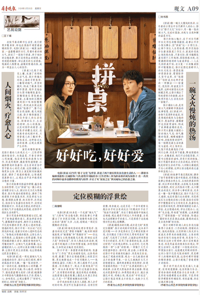 电影《拼桌》本身是一个充满“烟火气”与“人情味”的治愈电影,却在叙事之中暴露出了许多深层问题,导致整部电影呈现出来的“真情”太多、太浅,绘制成一部定位模糊的浮世绘。