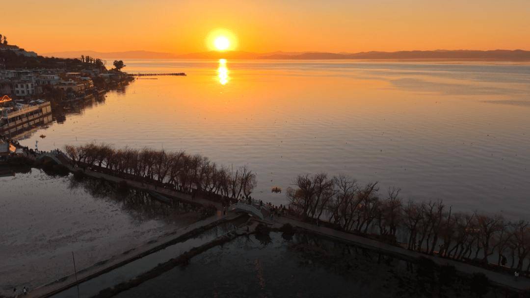 傍晚一定要去海晏村,这个古渔村的日落美不胜收,当橘色的光晕染滇池,你会相信神话从未走远 。