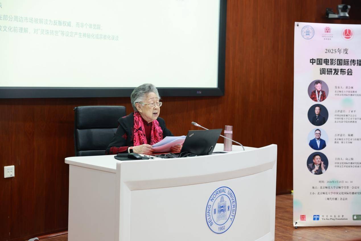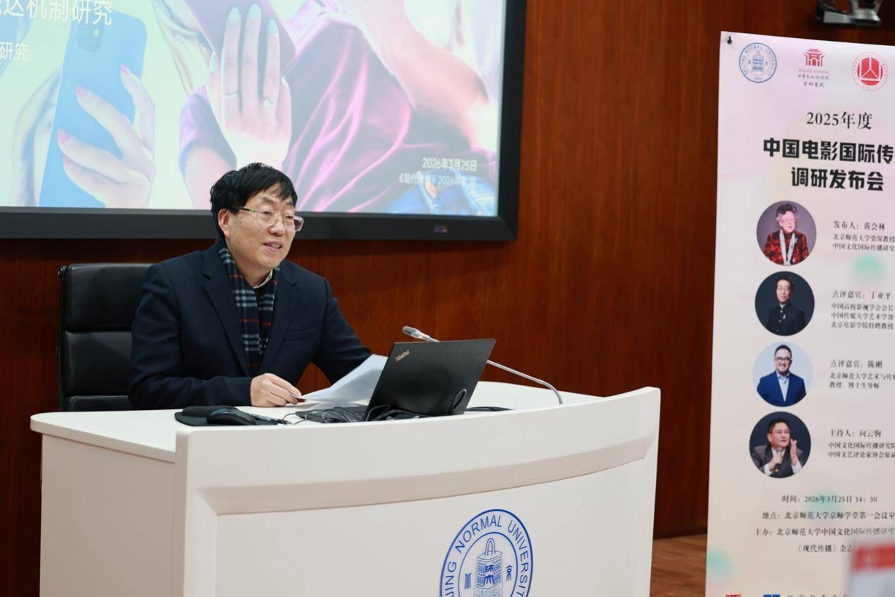 2026年3月25日,《2025年度中国电影国际传播调研报告》(以下简称《报告》)发布会在北京师范大学举行,该学术活动由北京师范大学中国文化国际传播研究院、《现代传播》杂志社共同主办。