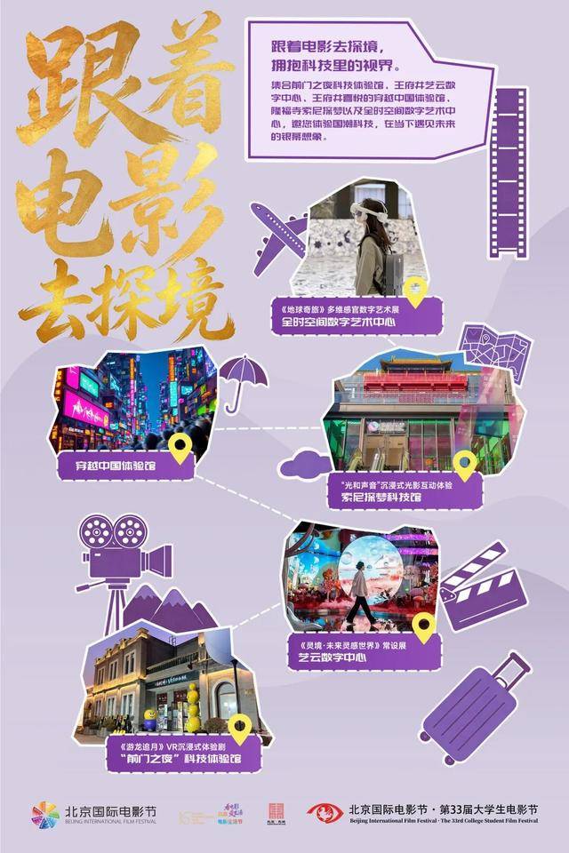 集合前门之夜科技体验馆、王府井艺云数字中心、王府井喜悦穿越中国体验馆、隆福寺索尼探梦、全时空间数字艺术中心,体验国潮科技,遇见未来银幕想象。