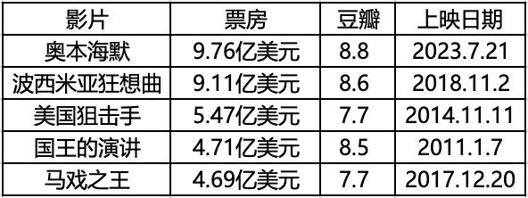 (全球市场传记电影票房TOP5)