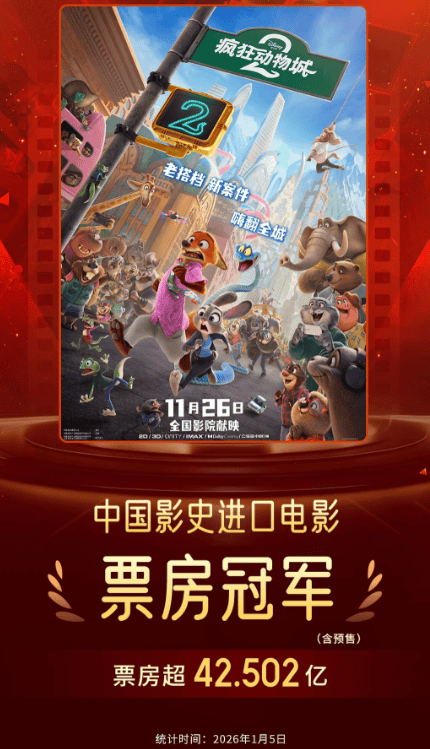 《疯狂动物城2》刚刚打破纪录,以42.5亿的总票房正式登顶“影史进口片冠军”;再加上《阿凡达3》的长线霸屏,两部大片吸干了市场上80%的排片和流量。
