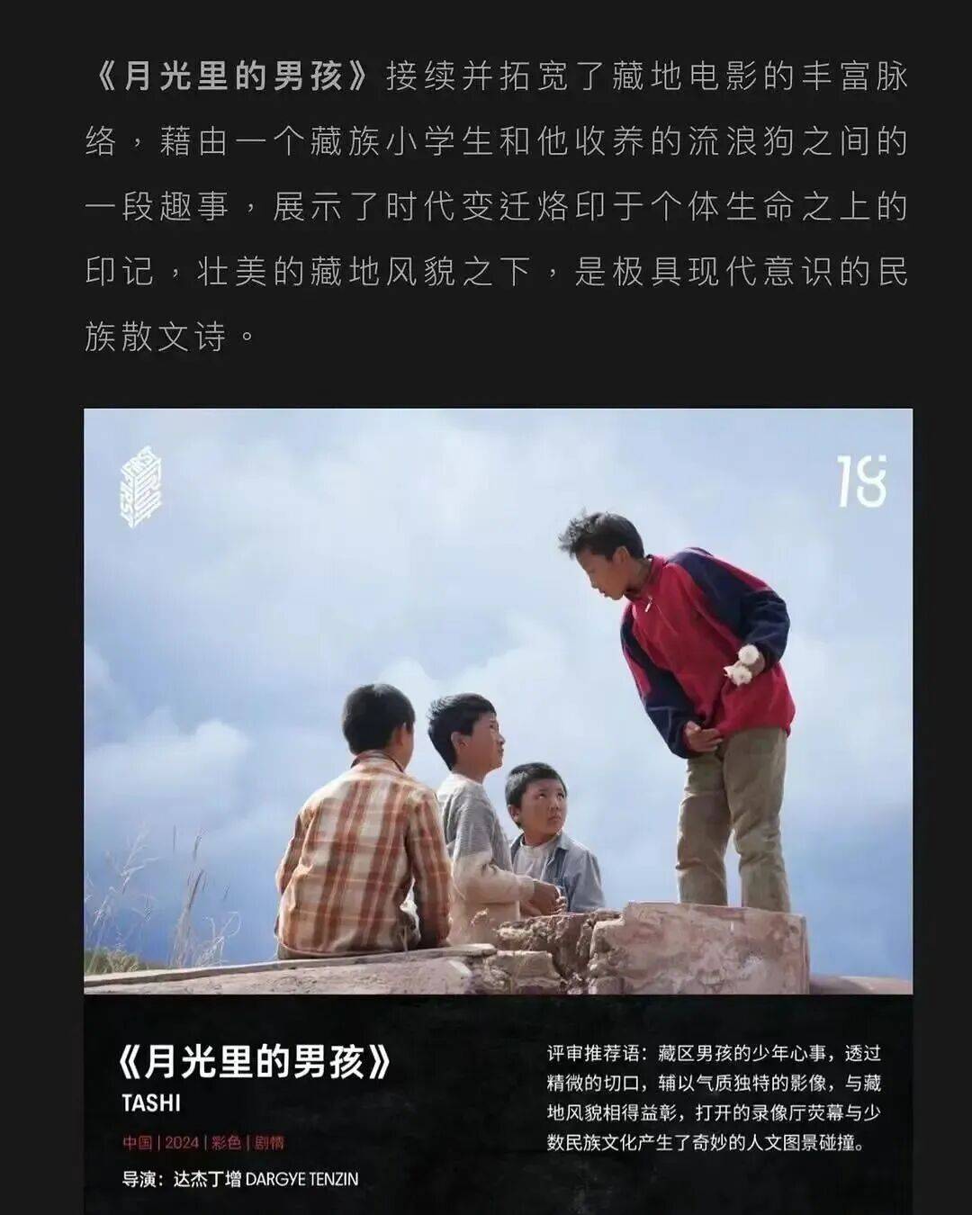 《月光里的男孩》这部电影是藏族导演达杰丁增的长片首作,背后站着已故的藏地电影大师万玛才旦。