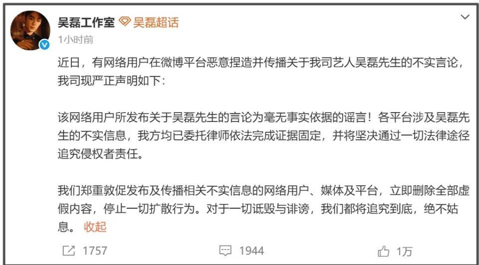 吴磊绯闻传出后全网一片震惊,虽然他工作室迅速发文回应,但这回应在不少网友看来完全没说服力。