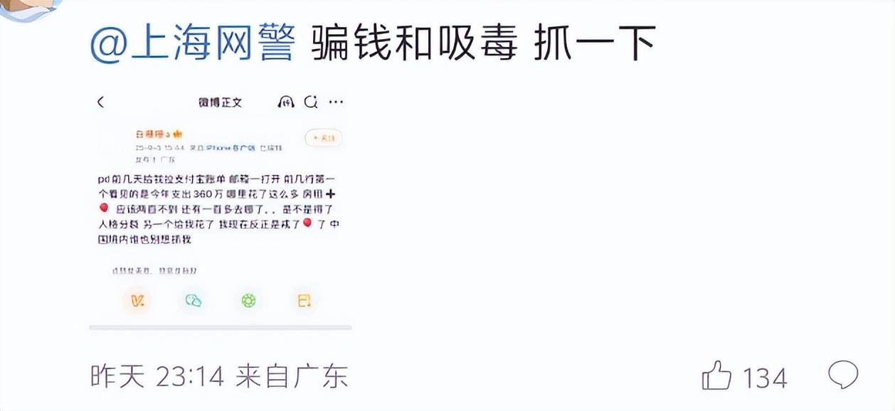 有网友爆出,白珊珊过往的社交动态里还有疑似自爆自己吸毒的,她的写法挺隐晦,关键字也用了表情符号来代替,但网友结合上下文来推断,觉得她暗指的就是那意思。