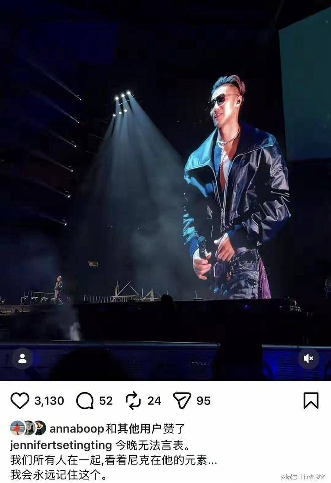 拍摄后,她在社交平台写道:今晚无法言喻,所有人一起看着谢霆锋的演出,会永远记住这一刻。