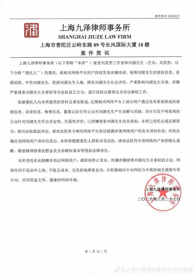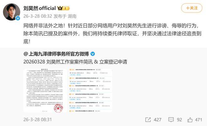该律师事务所认为这些行为已经严重侵犯了刘昊然的名誉权,并表示已完成证据保全,将依法提起诉讼。