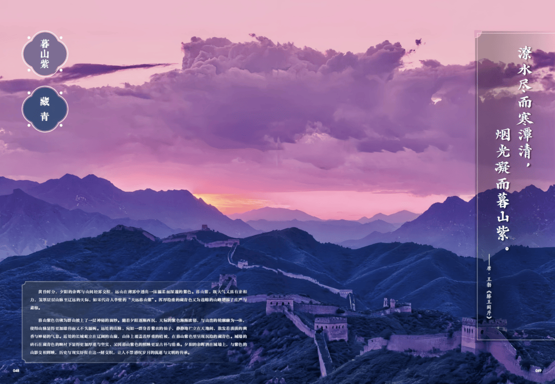 王勃笔下的“潦水尽而寒潭清,烟光凝而暮山紫”,让我们瞬间理解那种温柔深邃的紫色。