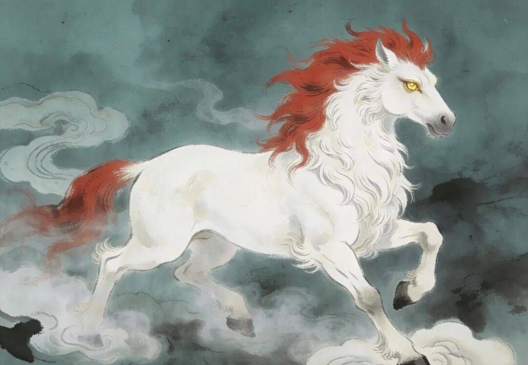 吉量一词出自《山海经》,形容神兽文马灰白中透着淡粉的毛色。