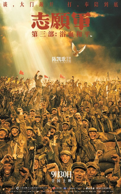 昨天,由陈凯歌执导的电影《志愿军:浴血和平》发布定档预告及海报,将于9月30日全国上映。