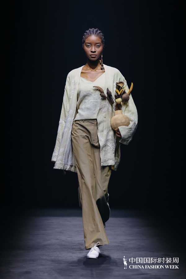 Must Bloom推崇材质本身未经过度雕琢的原始感,本季大量运用具有抗菌性、透气性的艾草纤维、汉麻、柞蚕丝等天然纤维为基底,融合剪纸与神话故事元素图腾,打造出兼具功能性与艺术性的时尚面料。
