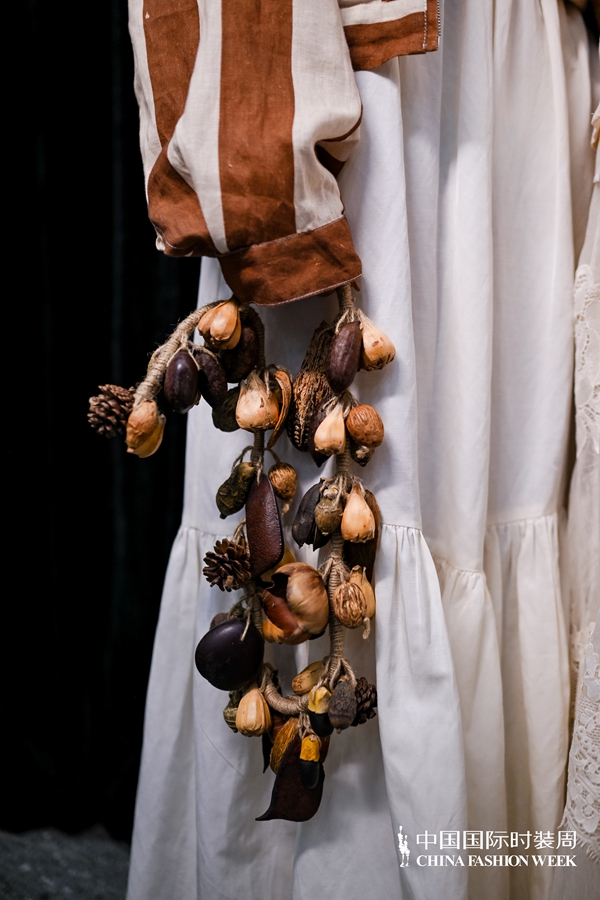 还有那些富有生命力的有趣细节,麦穗编织成腰带,种子串成项链、编织成耳饰......让衣服不再只是衣服,而是可穿戴的“大地艺术”。