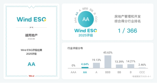 秀集团旗下越秀地产登顶Wind ESG评级榜首,重塑行业可持续发展标杆