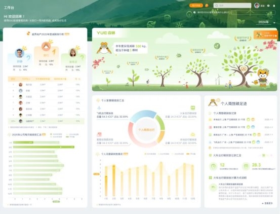 为激励全体员工参与气候变化管理,越秀地产在ESG管理系统“个人碳足迹”模块实时统计各员工在商务旅行中的碳排放情况,并根据年度减碳量的大小分等级授予“绿荫守护者”等不同的荣誉称号,践行绿色低碳出行。