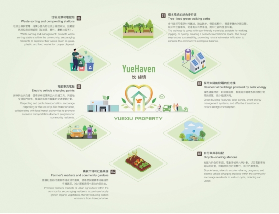 越秀地产致力于成为城市美好生活创领者,在2024年创新性提出了“可持续发展徽章”与“绿色生活路径”两大项目,旨在构建一个更具参与感和社会价值的社区生态体系,构建一个居民广泛参与、社区资源良性循环的可持续发展模式。