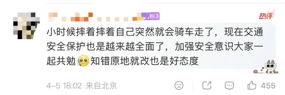 借此机会,也想和所有家长朋友们共勉:孩子学会骑车不等于可以上路,交通安全容不得半分疏忽,遵守法规才是对孩子最好的保护。